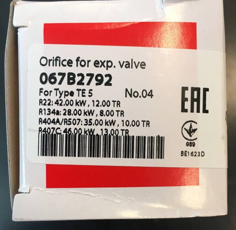 Клапанный узел TE 5 в сборе № 04 067B2792 производства Danfoss предназначен для поддержания номинальной производительности холодильной системы путём дозирования хладагента в соответствии с расчетной пропускной способностью терморасширительного вентиля TE 5; узел обеспечивает согласование массового расхода с номинальными характеристиками вентиля при изменениях тепловой нагрузки.