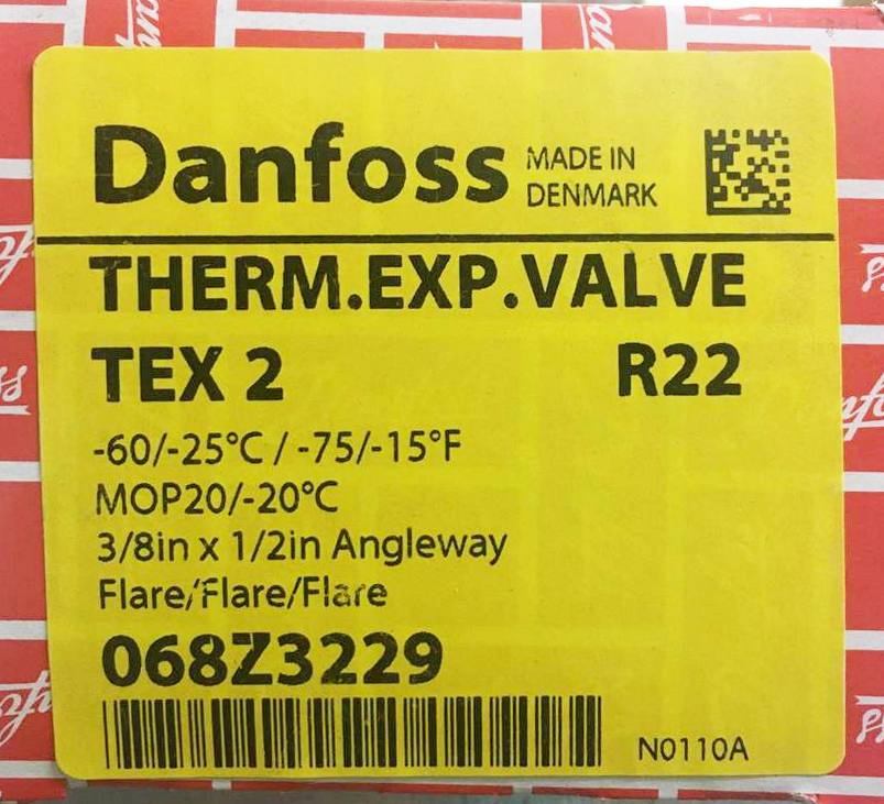 Термостатический элемент Danfoss TEX2 MOP B (артикул 068Z3229) рассчитан на работу в низкотемпературных режимах и обеспечивает контроль при температуре среды от −60 до −25 °C; конструкция элемента рассчитана на максимальное рабочее давление до 28 бар и рассчитана на применение хладагента R22.