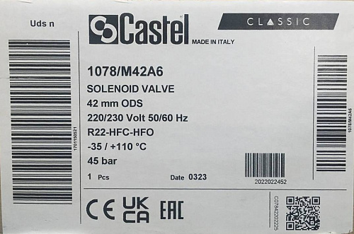 СОЛЕНОИДНЫЙ КЛАПАН С КАТУШКОЙ CASTEL, 42mm ODS, 230V, 1078/M42A6