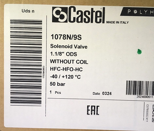 СОЛЕНОИДНЫЙ КЛАПАН CASTEL без катушки, 1 1/8" (28 mm) ODS, 1078N/9s, Италия
