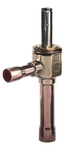 Конструктивно клапан выполнен с электромагнитным приводом и модульным дроссельным элементом, который может быть заменён без замены корпуса клапана, что позволяет адаптировать пропускную способность под требования конкретной холодильной схемы. Корпус предназначен для монтажа методом пайки, а электрическое управление предполагает подключение к внешнему контроллеру, получающему входные сигналы от датчиков давления и температуры для регулирования положения запорного элемента.