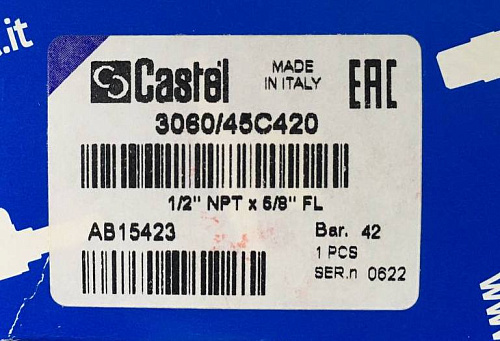 КЛАПАН ПРЕДОХРАНИТЕЛЬНЫЙ CASTEL Safety Valve 1/2"NPT x 5/8"SAE Bar 42,0, 3060/45C420