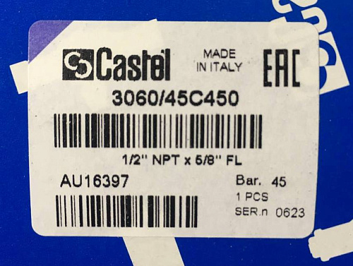 ПРЕДОХРАНИТЕЛЬНЫЙ КЛАПАН CASTEL Safety Valve 1/2"NPT x 5/8"SAE Bar 45,0, 3060/45C450