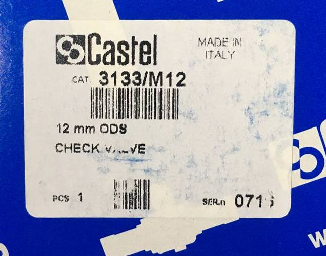 КЛАПАН ОБРАТНЫЙ С УСИЛЕННОЙ ПРУЖИНОЙ CASTEL Check Valve12mm ODS, 3133/M12