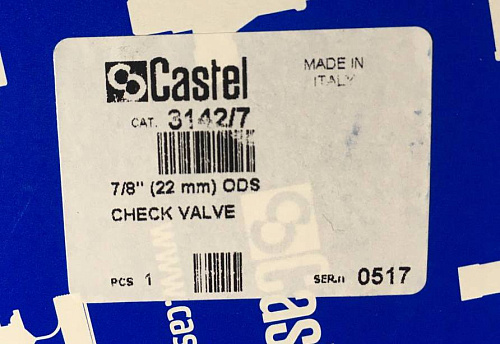 ОБРАТНЫЙ КЛАПАН CASTEL Check Valve 7/8"-22 mm ODS, 3142/7