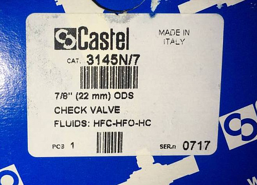 КЛАПАН ОБРАТНЫЙ CASTEL Check Valve 7/8"-22 mm ODS, 3145N/7