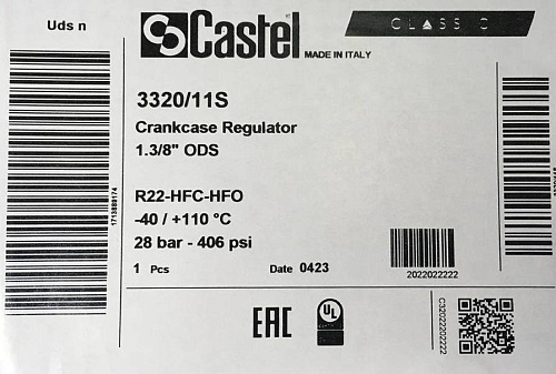 РЕГУЛЯТОР ДАВЛЕНИЯ В КАРТЕРЕ КОМПРЕССОРА (KVL) CASTEL Crankcase Regul. 1.3/8"- 35mm ODS, 3320/11S