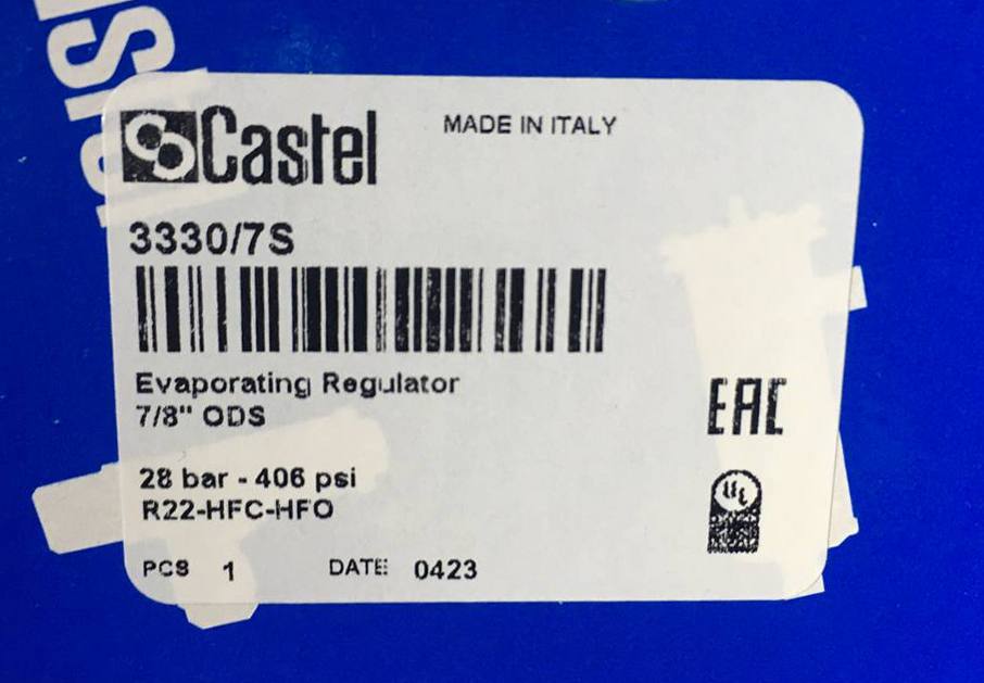 РЕГУЛЯТОР ДАВЛЕНИЯ КИПЕНИЯ (KVP) CASTEL Evaporating Regulator 7/8"-22 mm ODS, 0.2-5.5 bar, 3330/7S