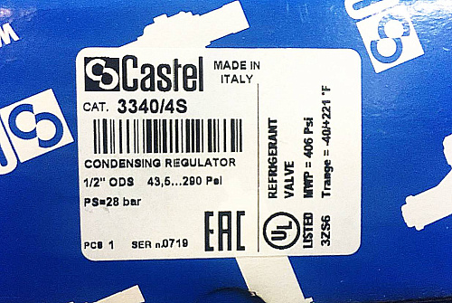 РЕГУЛЯТОР ДАВЛЕНИЯ КОНДЕНСАЦИИ (KVR) CASTEL Condensing Regulator 1/2" ODS, 3-20 bar, 3340/4S