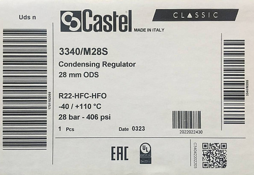 РЕГУЛЯТОР ДАВЛЕНИЯ КОНДЕНСАЦИИ (KVR) CASTEL Condensing Regulator 28mm (1.1/8") ODS, 3-20 bar, 3340/M28S