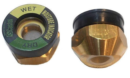 Индикатор влажности поможет определить наличие влаги в системе и необходимость замены фильтра-сушителя. Смотровые стёкла с индикатором влажности устанавливаются на жидкостной линии.