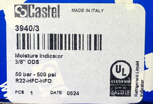 СМОТРОВОЕ СТЕКЛО CASTEL С ИНДИКАТОРОМ ВЛАЖНОСТИ Moisture Indicator 3/8" ODS, 3940/3