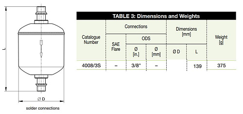 - Соединение пайка Ø Дюймы / мм: 3/8" ODS