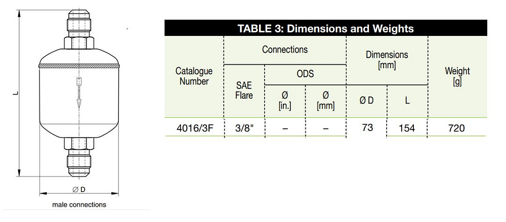 Внутренние компоненты включают фильтрующий элемент для улавливания твердых частиц и влагопоглощающий адсорбент для удаления свободной и растворённой влаги; корпус и уплотнения спроектированы с учётом взаимодействия с типичными холодильными средами и рабочими параметрами холодильных систем.