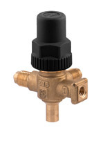 Конструкция вентиля предусматривает использование соединений с резьбой 3/8" SAE как на входе, так и на выходе, что упрощает процесс установки устройства в контур. Наличие сервисного клапана с резьбой 1/4" SAE позволяет проводить оперативное техобслуживание без демонтажа. Дополнительное соединение для пайки диаметром 10 мм расширяет возможности монтажа в различных системах.