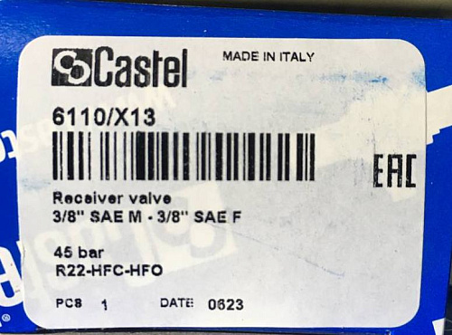 ВЕНТИЛЬ ЗАПОРНЫЙ УГЛОВОЙ CASTEL 3/8" Receiver Valve, 6110/X13