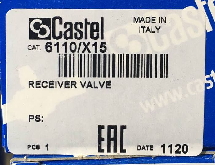 ВЕНТИЛЬ ЗАПОРНЫЙ УГЛОВОЙ CASTEL 1/4" Receiver Valve, 6110/X15