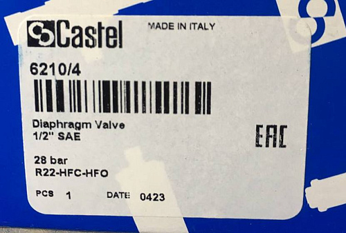 ВЕНТИЛЬ ЗАПОРНЫЙ CASTEL Diaphragm Valve 1/2" Flare, 6210/4
