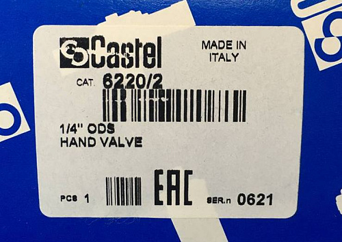 ВЕНТИЛЬ ЗАПОРНЫЙ CASTEL Diaphragm Valve 1/4" ODS, 6220/2