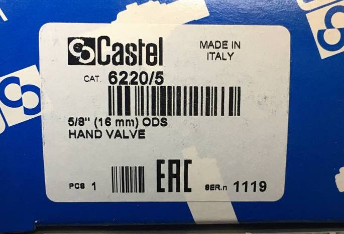 ВЕНТИЛЬ ЗАПОРНЫЙ CASTEL Diaphragm Valve 5/8"-16 mm ODS, 6220/5