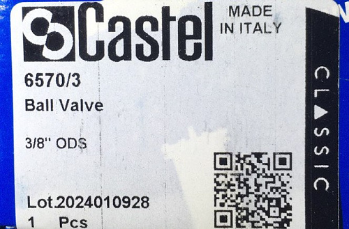 ШАРОВОЙ ВЕНТИЛЬ CASTEL, 3/8" ODS, Kv=3 м3/час, 6570/3