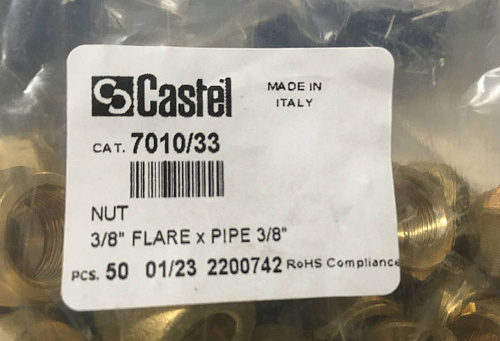 ГАЙКА НАКИДНАЯ CASTEL Nut 3/8" Flare x Pipe 3/8", 7010/33