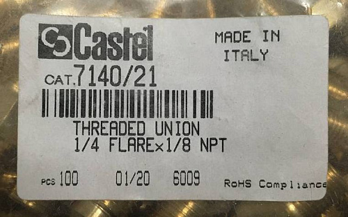 ПЕРЕХОДНИК CASTEL (НАРУЖ./НАРУЖ.) Threaded Union 1/4" Flare x 1/8" NPT, 7140/21