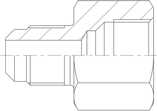Изделие выполнено в виде резьбового union‑соединителя, предназначенного для механической сборки и разборки узлов трубопроводов без применения сварки; конструкция обеспечивает совместимость между наружной и внутренней резьбой различных стандартов и упрощает монтаж и сервисные работы в местах перехода между компонентами контура.