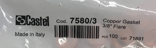 ПРОКЛАДКА МЕДНАЯ CASTEL Copper Gasket 3/8" Flare, 7580/3