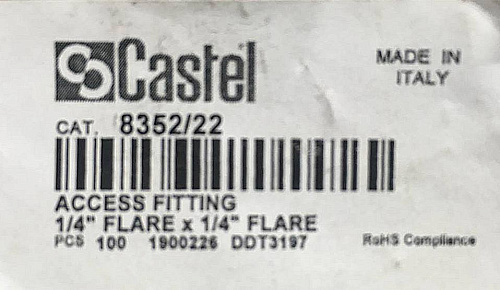 ШТУЦЕР CASTEL Access Fitting 1/4" Flare x 1/4" Flare, 8352/22