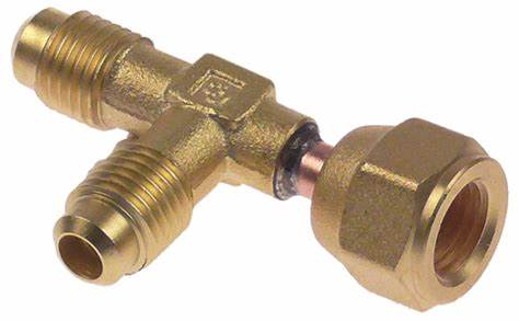 Резьбовой тройник Castel 8380/X06 предназначен для организации трехстороннего ответвления в холодильных и технологических контурах; все три соединительных интерфейса выполнены под стандарт SAE с номинальным сечением 1/4 дюйма, расчетное максимальное рабочее давление изделия составляет 45 бар, что определяет его эксплуатационные пределы в гидравлическом контуре.