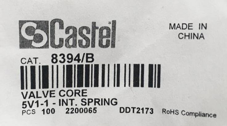 НИППЕЛЬ CASTEL Valve core 5V1-1 - Internal Spring Tmax= 90° C MWP=30 bar, 8394/B