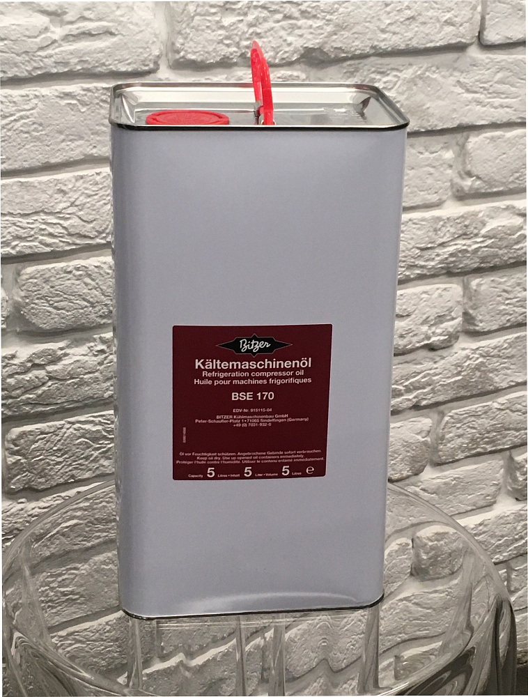 Масло Bitzer BSE170 в объёме 5 л представляет собой синтетический смазочный материал для холодильного и климатического оборудования; при рабочей температуре 40 °C кинематическая вязкость порядка 173 мм²/с, плотность при 15 °C около 972 кг/м³, температура вспышки составляет приблизительно +260 °C, температура текучести — до −30 °C. Эти параметры определяют способность масла формировать масляную плёнку, характеристики перекачиваемости и тепловую стабильность в диапазоне типичных рабочих режимов компрессоров.