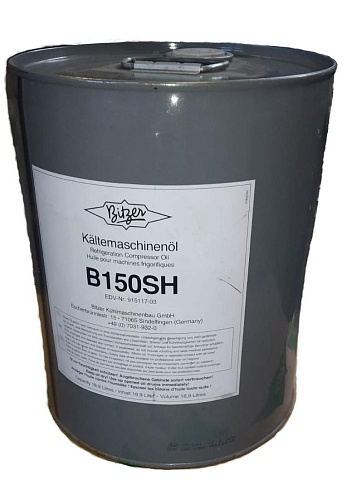 Синтетическое компрессорное масло Bitzer B150SH поставляется в фасовке 18,9 л (артикул CPI 4214 150) и предназначено для смазки холодильных компрессоров промышленного и коммерческого назначения; объем упаковки обеспечивает дозирование масла при техническом обслуживании и ремонте агрегатов с учётом типовых заправочных объёмов.