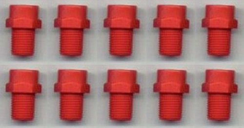 Номинальная производительность каждого сопла составляет 5 кг/ч; комплект включает десять одинаковых сопл, что при одновременной работе всех элементов даёт суммарную подачу до 50 кг/ч. Цветовое исполнение — красный, используемое для визуальной идентификации изделия в составе монтажных узлов.