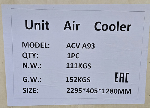 Конденсатор T-COOL ACV A93; 93,0 кВт, R404A, ∆T=15 K, 2*630 мм (без вентиляторов)
