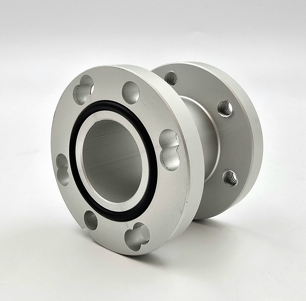 Конструктивные особенности адаптера включают наличие двух фланцевых вариантов, что обеспечивает унификацию и гибкость в монтаже. Три- и четырёхотверстные фланцы позволяют применять адаптер в различных конфигурациях, что делает его совместимым с широким спектром оборудования. Такая конструкция гарантирует прочность и долгосрочную надежность соединений без необходимости в дополнительных переходниках.
