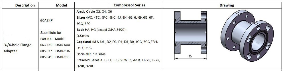 Данный адаптер совместим с широким спектром компрессоров, включая марки Bitzer, Bock, Copeland, Dorin и Frascold. Это делает его пригодным для использования в различных системах охлаждения, применяемых в супермаркетах, складских комплексах и предприятиях пищевой промышленности. Его конструкция обеспечивает легкость установки и интеграцию в существующие инженерные системы.