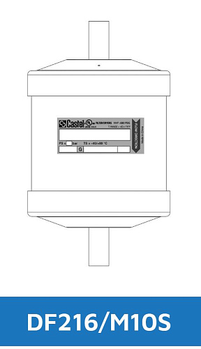 Фильтр-осушитель CASTEL DF216/M10S предназначен для механической очистки и осушки хладаносителя с дополнительной функцией нейтрализации кислот; его рабочая ёмкость порядка 250 см3 обеспечивает поглощение влаги и продуктов коррозии в пределах объёма протекающей среды. Диапазон рабочих температур устройства от −40 °C до +80 °C и расчётное предельное рабочее давление до 50 бар определяют возможность эксплуатации в широком спектре холодильных контуров при высоких температурно‑давлениях.