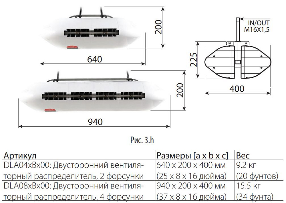 ВЕНТИЛЯТОРНЫЙ РАСПРЕДЕЛИТЕЛЬ CAREL ДВУСТОРОННИЙ 32,0 Л/ЧАС (8 ФОРСУНОК ПО 4,0 Л/ЧАС) 115 V 60 HZ
