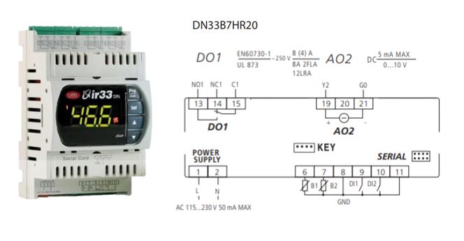 КОНТРОЛЛЕР УНИВЕРСАЛЬНЫЙ CAREL DN33 UNIV 2NTC/PTC/PT1000, 1D.O.+1A.O. BUZ, IR, 115 TO 230 VAC