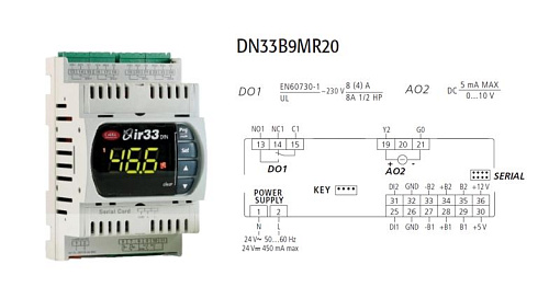 УНИВЕРСАЛЬНЫЙ КОНТРОЛЛЕР CAREL DN33 UNIV 2 UNIVERSAL INPUTS, 1D.O.+1A.O., BUZ, IR, 24 VAC/VDC