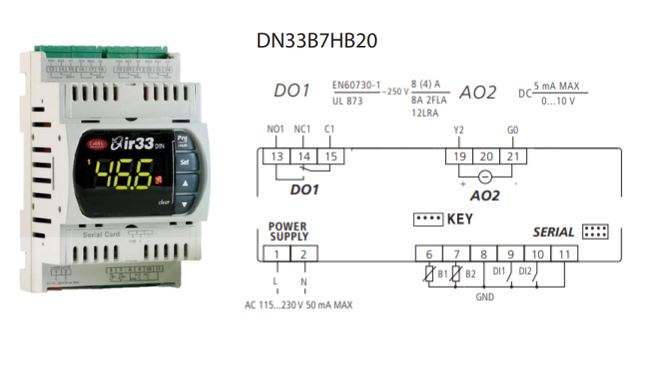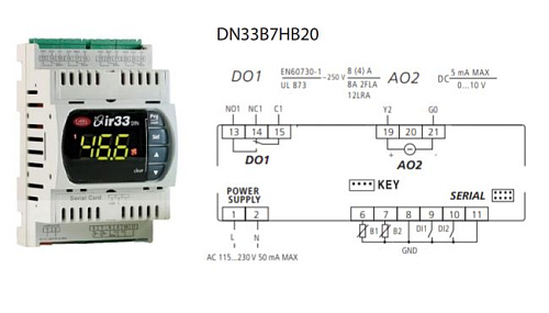 УНИВЕРСАЛЬНЫЙ КОНТРОЛЛЕР CAREL DN33 UNIV 2NTC/PTC/PT1000, 2D.O.+2A.O., BUZ, IR, RTC,115 TO 230 VAC