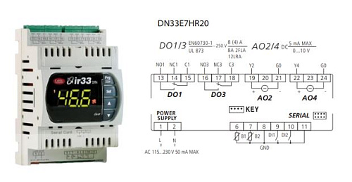 УНИВЕРСАЛЬНЫЙ КОНТРОЛЛЕР CAREL DN33 UNIV 2NTC/PTC/PT1000, 2D.O.+2A.O., BUZ, IR, 115 TO 230 VAC