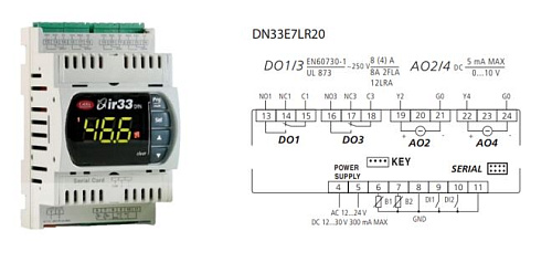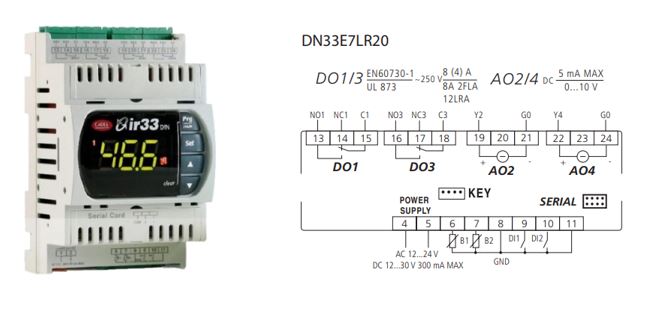 УНИВЕРСАЛЬНЫЙ КОНТРОЛЛЕР CAREL DN33UNIV 2NTC/PTC/PT1000, 2D.O.+2A.O., BUZ, IR, 12 TO 24 VAC 12 TO 30