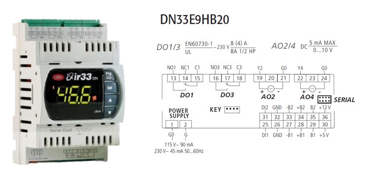 УНИВЕРСАЛЬНЫЙ КОНТРОЛЛЕР CAREL DN33 UNIV 2 UNIVERSAL INPUTS, 2D.O.+2A.O., BUZ, IR, RTC,115 TO 230 VA