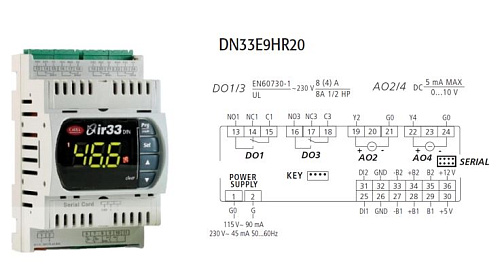 УНИВЕРСАЛЬНЫЙ КОНТРОЛЛЕР CAREL DN33 UNIV 2 UNIVERSAL INPUTS, 2D.O.+2A.O., BUZ, IR, 115 TO 230 VAC