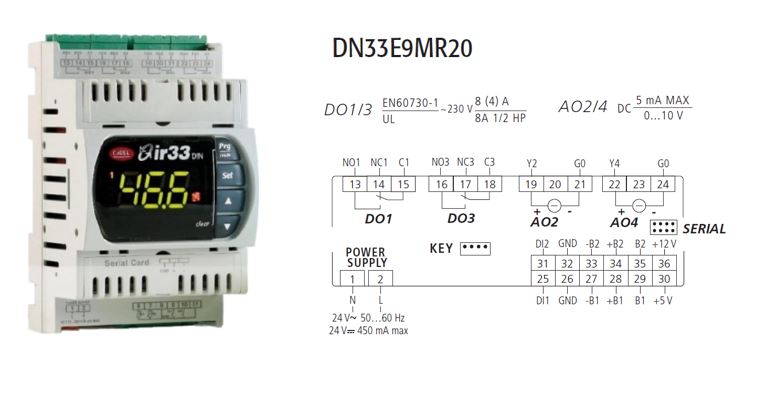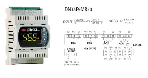 УНИВЕРСАЛЬНЫЙ КОНТРОЛЛЕР CAREL DN33 UNIV 2 UNIVERSAL INPUTS, 2D.O.+2A.O., BUZ, IR, 24 VAC/VDC