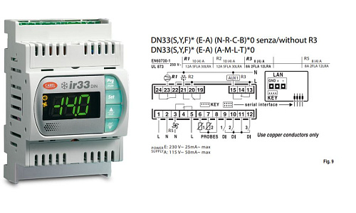 КОНТРОЛЛЕР CAREL IR33 DIN 16A, 16A, 8A, 230 V RTC BUZ 2NTC 3D.I. SCREW TERMINALS
