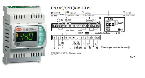 КОНТРОЛЛЕР CAREL IR33 DIN 2HP, 8A 115 TO 230 VAC 2NTC 3D.I. BUZ SCREW TERMINALS
